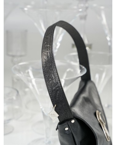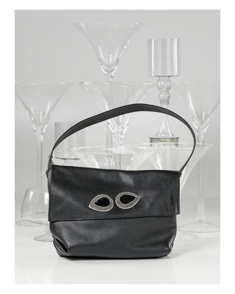 • Χειροποίητη δερμάτινη τσάντα με μεταλλικά στοιχεία.